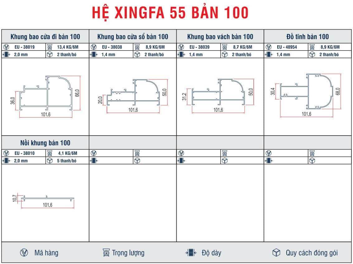 Hệ nhôm Xingfa bản 100 là dòng cửa nhôm cao cấp được tin dùng rộng rãi trong các công trình xây dựng hiện nay. Sản phẩm sở hữu thiết kế bản rộng 100mm ấn tượng và được sản xuất từ chất liệu nhôm cao cấp. Đặc biệt, lớp sơn tĩnh điện bề mặt không chỉ tăng tính thẩm mỹ mà còn giúp hệ cửa chống chịu hiệu quả với mọi điều kiện thời tiết khắc nghiệt, đảm bảo độ bền màu và khả năng chống ăn mòn vượt trội theo thời gian. |